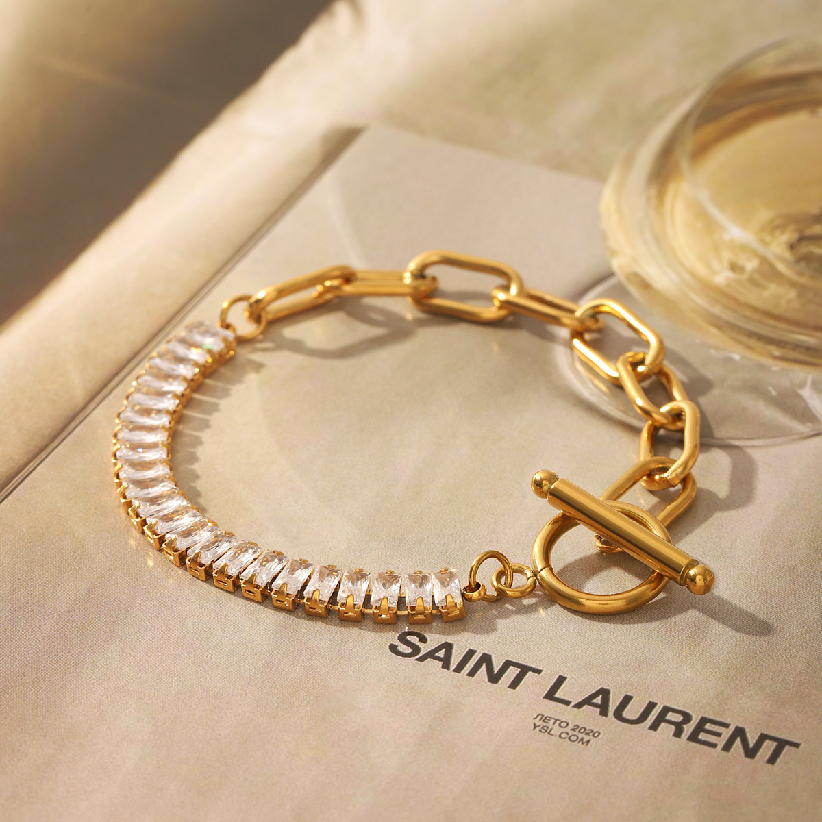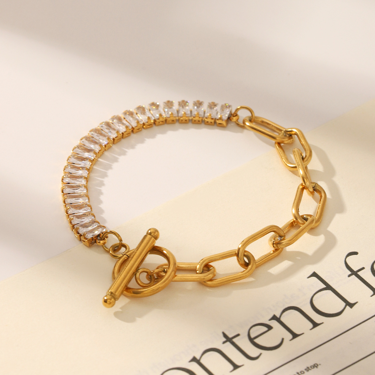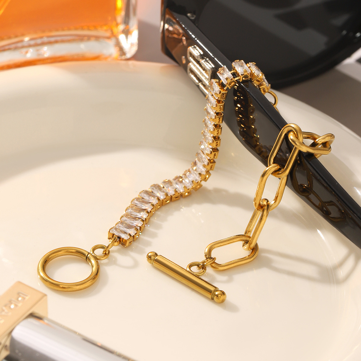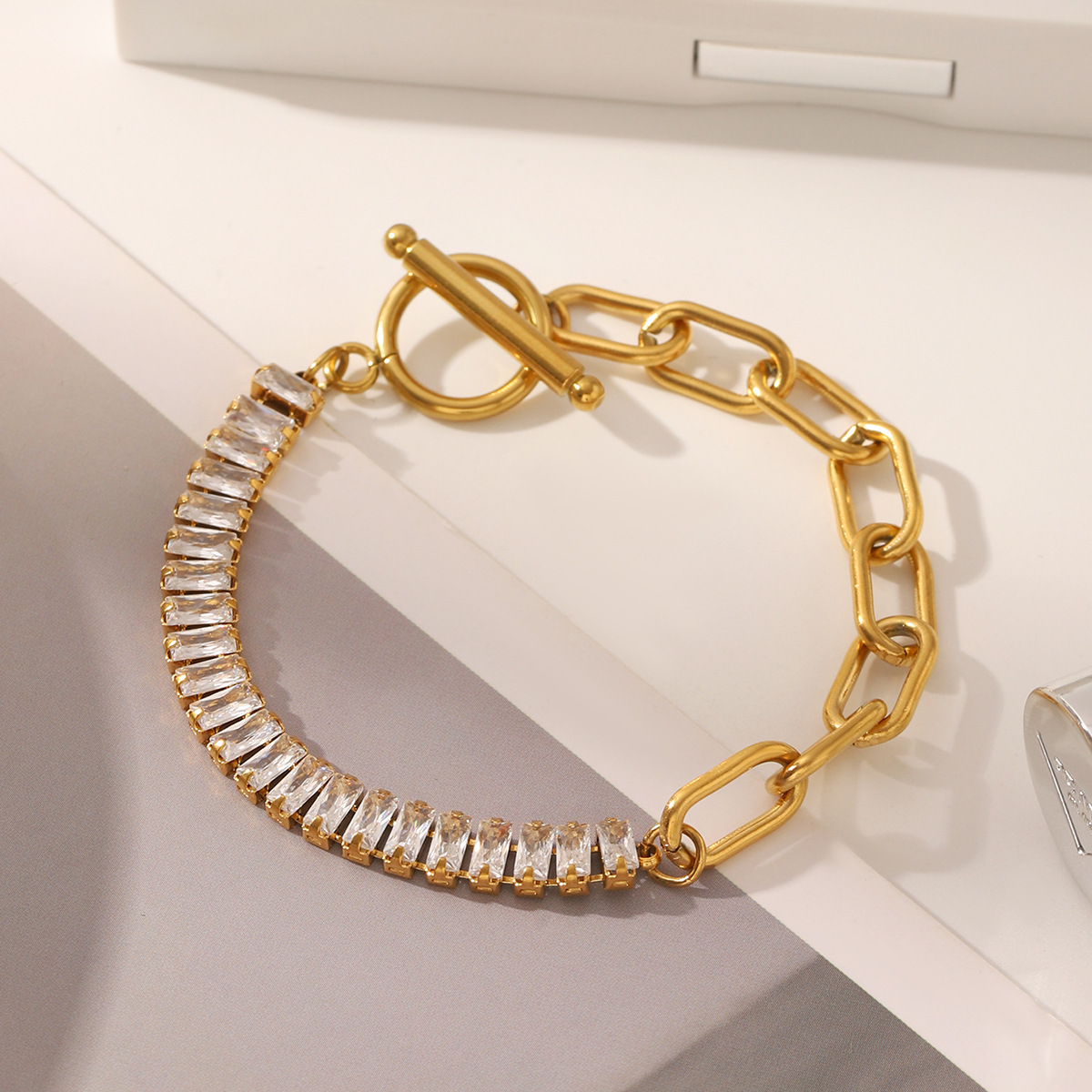 Elegant Geometric Zircon Bracelet – Stainless Steel Jewelry for Women